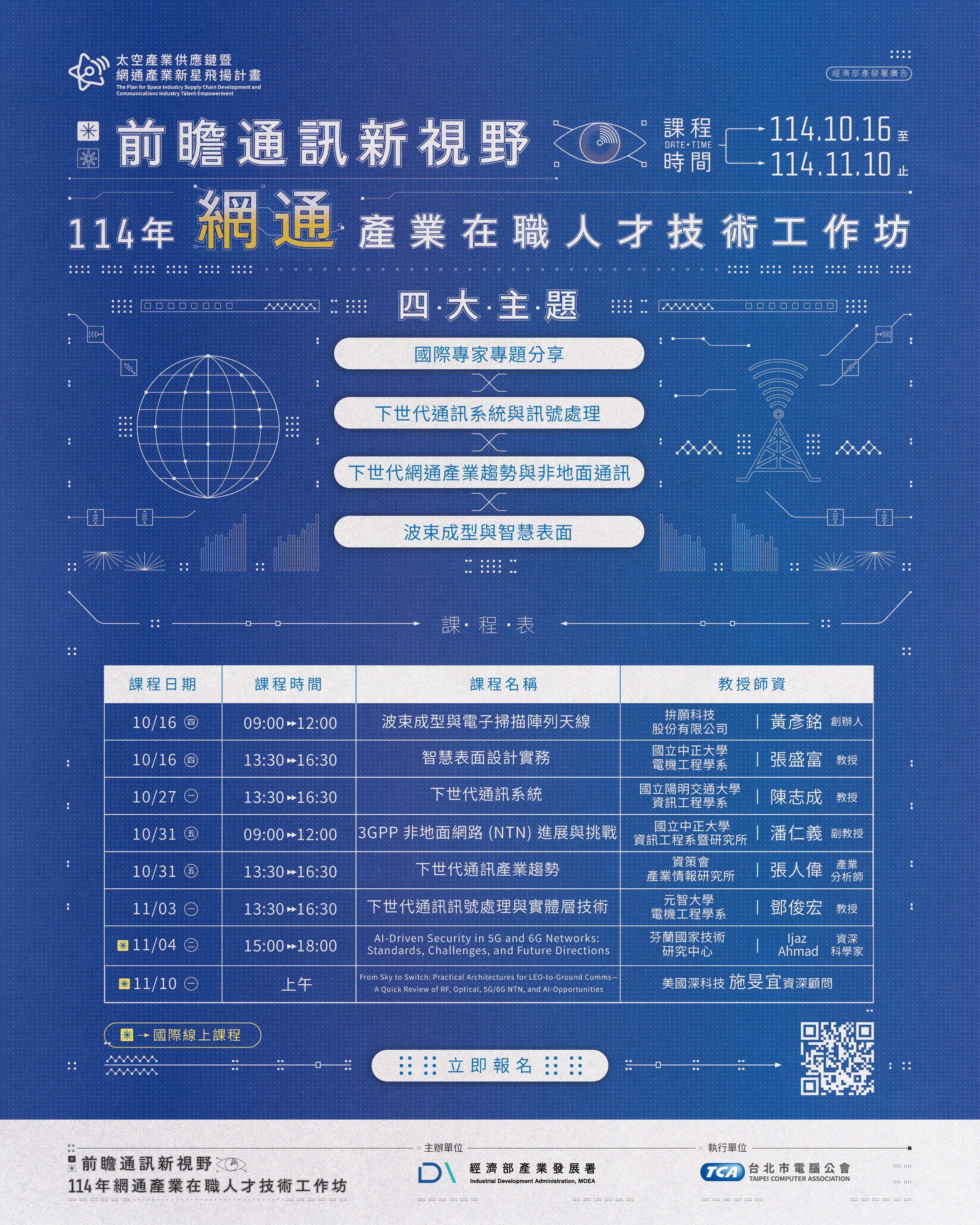 前瞻通訊新視野 114年網通產業在職人才技術工作坊熱烈報名中!
